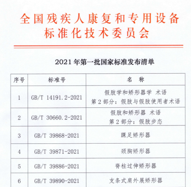 近日,國家市場監(jiān)督管理總局、國家標(biāo)準(zhǔn)化管理委員會發(fā)布標(biāo)準(zhǔn)公告(2021年第3號),全國殘疾人康復(fù)和專用設(shè)備標(biāo)準(zhǔn)化技術(shù)委員會歸口管理的國家標(biāo)準(zhǔn)批準(zhǔn)數(shù)量高達(dá)17項。這是康復(fù)輔助器具領(lǐng)域歷次國家標(biāo)準(zhǔn)發(fā)布中單次發(fā)布數(shù)量最多的一次,凸顯了國家對康復(fù)輔助器具產(chǎn)業(yè)和殘疾人康復(fù)標(biāo)準(zhǔn)化工作的高度重視。發(fā)布的17項國家標(biāo)準(zhǔn)中,涉及假肢2項、矯形器4項、盲人用和低視力輔助器具5項、失禁用尿吸收輔助器具6項。
